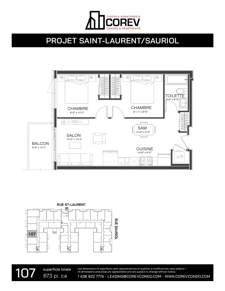 Studios, one-bedroom, two-bedroom and three-bedroom apartments are available for rent in varying sizes. The building has a rooftop terrace, fitness room, elevator, video surveillance, keyless entry, underground parking and tree-lined courtyards woven into the environment in a friendly design. Kitchens are equipped with stainless-steel appliances and rent includes heating, hot water and air conditioning. Offering high-end finishing throughout, balconies, large windows, modern kitchens & bathrooms, and much more.